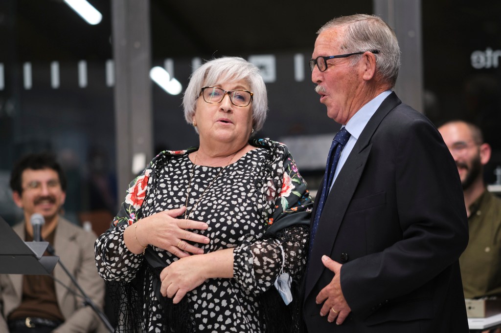 Combinamos el repertorio de este segundo año con algunas canciones de la primera edición: nuestro medley de jota-ranchera, la nana que cantamos a cappella en valenciano (una cançó de bressol) y nuestra copla despechada, dedicada a les mayores LGTBI+. En la segunda parada de la gira, Zaragoza, el grupo llegó con una mezcla de miedo y entusiasmo. Fue enternecedor cómo Ángel se sentó lejos el primer día, se acercó un poco el segundo y al tercero ya era uno más, cantando y contando chistes. Hay algo sanador en este encontrarse, en compartir tiempo y espacio a pesar de las precauciones, con cuidado pero sin miedo. Parte de lo que caracteriza Músicas memorables son las conexiones que se generan entre los diferentes grupos de participantes, sus diferentes territorios e imaginarios. Anécdotas sobre el diccionario bajo seudónimo aparecieron como Tolosa (todo lo sabe) en Sevilla y Espabilaburros en Zaragoza. Me pregunto cómo lo llamaremos quienes pertenecemos a mi generación (no puedo evitar pensar en la cantidad de veces que pienso en «buscar en Google»). En el concierto-presentación de Zaragoza, les participantes cantaron desde sus butacas, ante la mirada embelesada del público en los asientos adyacentes, Santiago dio pie, con su poderosa voz, a la jota Va delante de su madre; más tarde Eloísa comenzó La jota de los labradores y cerca del final del espectáculo les invitamos a levantarse para cantar y bailar todes juntes el himno eurovisivo Enséñame a cantar.